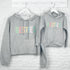 Relaxed, fun and wonderfully soft and comfortable grey hoodie with a colourful "Besties" print. The adult version is a short model, without elastic at the waist. A really nice outfit for casual dressing with the mini versions. Both versions are sold separately. The print is made with care and love at our partner Lovetree Design's studio in the UK.