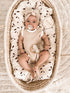 An adorable ruffle romper made of silky soft and comfortable ribbed cotton fabric with a little bit of stretch. A comfortable and cute outfit for many occasions. The romper has beautiful frills on the collar, around the shoulder and on the legs. Stylish light beige shade with creamy frills. Two wooden buttons at the back and snaps at the crotch for easy diaper changes. This is a set that includes a romper and a matching headband made of the same fabric. Currently, we only have the beige/cream version of the set in our selection. Combine this beautiful set with our other products shown in the pictures, such as Liv & Loke baby booties, Beige Moon pacifier clip or the perfectly matching Bunny Sand rattle!
