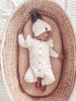 Soft, high-quality, comfortable and sweetly girly baby knit jumpsuit with frills made of 100% cotton. A lovely everyday outfit that is also suitable for a more festive occasion and looks really beautiful in baby photos. This knit jumpsuit is made of a slightly thinner knit and is therefore also perfect for slightly warmer weather. The color of the knit jumpsuit is a beautiful white Vanilla. It goes perfectly with the Pom Booties baby booties and the Lola bow headband from the same brand or the Little B's Nursery baby booties and our other wonderful headbands!