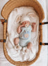 The ultimate cute and adorable baby slippers with a light beige pompom in the middle and tiny bunny ears on both sides with a silky soft teddy trim. The slippers also have tie straps to keep them on little feet. These baby slippers are made of high-quality 100% cotton and their shafts can be folded down more or less as needed. Perfect for everyday use or for unforgettable baby photos. You can get the cutest set in the world by combining the hat with the same brand's bunny beanie! Also a perfect choice as a baby gift or baby shower gift, for example when combined with our bunny rattle or a beautiful blanket.