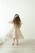 Ihana, mukava ja täydellisen tyttömäinen mekko monipuoliseen käyttöön! Katherine-mekossa on todella miellyttävä, pehmeä ja laskeutuva materiaali sekä pehmeä vuorikangas, joka varmistaa, että mekko ei ole läpikuultava. Mekon sävy on tyylikäs neutraali lattesävyinen vaalea beige pohjaväri, jossa on pientä poltetun oranssin/kanelin sävyistä kukkakuviota. Mekon malli on todella helppokäyttöinen ja sen käyttöikä on pitkä. Yläosa on joustava ja mekko levenee A-tyylisesti rinnasta alaspäin kellohelmaiseksi mekoksi, jollaisesta jokainen pieni prinsessa unelmoi. Mekkoa voi pitää todella kauniisti myös off-the-shoulder -tyylisesti olkapäältä alas laskettuna. Malli on leikkisä, tyttömäinen ja todella mukava päällä. Tyttöjen mekossa on tyylikäs polven alapuolelle laskeutuva pituus. Mekkoa voi helposti käyttää myös pitkälle syksyyn neuletakin kanssa. Täydellinen sekä arkeen että juhlaan ja valokuvauksiin. Tämä mekko on osa Mini & Me -mallistoamme, eli sille löytyy vastaava Mama-versio ja nämä yhdistämällä saat täydelliset samistelumekot!