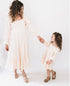 Kertakaikkisen täydellinen neutraalinsävyinen ja ilmava tyttöjen mekko ihanan tuntuista ja superpehmeää 100-prosenttista musliinipuuvillaa lämpimän kermanvaaleassa/vaalean beigessä sävyssä. Ihanteellinen valinta kaikkiin erityisiin perhehetkiin - olipa kyseessä perhejuhlat, äitienpäivä, perhekuvaus, ristiäiset/nimiäiset tai vaikka ihan vaan kesäinen picnic-reissu. Pitkien hihojen ansiosta mekkoa pystyy hyvin käyttämään myös kylmempinä vuodenaikoina ja hihoissa on myös kauniit yksityiskohdat. Yläosa on joustava ja mekko on erittäin helpon ja kauniin mallinen. Tämän tyttöjen mekon pituus jää vähän polven yläpuolelle, toki käyttäjän pituudesta riippuen. Tarkat kokotiedot ja pituudet löydät alta olevista mitoitustiedoista. Tämä mekko on osa Mini & Me -mallistoamme, eli sille löytyy yhteensopiva Mama-versio ja nämä yhdistämällä saat täydelliset samistelumekot! Lisäksi valikoimastamme löytyy myös samasta kankaasta valmistettu poikien/unisex-mallinen pusero ja vauvan romper, joten näillä mekoilla samistelu onnistuu erittäin monipuolisesti. Ehdoton suosikki myös valokuvaajille lainavaaterekkiin!