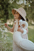 Tyylikäs kesäinen hattu, joka suojaa auringonpaahteelta ja täydentää minkä tahansa asun, olipa kyseessä rantapäivä, piknik tai kesäinen shoppailureissu! Sopii sekä tyylinsä että nauhan sävyn puolesta täydellisesti yhteen myös meidän Bailey's Blossomsin Clara Cotton & Lace Flutter -maximekon kanssa.