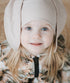 Välikauteen loistavasti sopiva kaksinkertaisesta kankaasta valmistettu pipo supersuloisilla pupunkorvilla, kauniin neutraalissa beigen sävyssä. Materiaali on singleneulosta, joka on 95 % GOTS-sertifioitua luomupuuvillaa ja 5 % elastaania. Tuote on suunniteltu ja valmistettu Suomessa. Tuotteelle on myönnetty suomalaisesta työstä kertova Avainlippu-merkki. Todella söpö kotimainen eettisesti valmistettu unisex-pipo syksyyn ja kevääseen ja ihana vaikkapa sisarusten samisteluun, sillä kokoja on vauvasta koululaiseen!