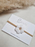 Pieni, söpö ja herttainen panta, jossa käsinvirkattu valkoinen kukka beigen sävyisellä keskiosalla. Itse pantanauha on erittäin joustava ja pehmoinen ja sopii niin vauvalle kuin isommallakin tytölle.