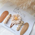 Todella kaunis hiussolkisetti, josta löytyy kaikki ihanuudet, eli neutraaleja sävyjä, ihastuttava kukkasomiste sekä pikkuisia pompom-koristeita. Söpöä ja tyylikästä samassa paketissa!